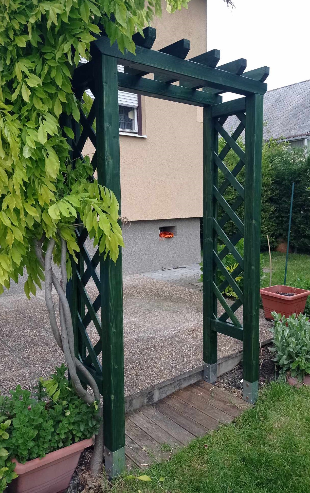 Egy-egy klasszul megépített lugassal kisebb-nagyobb járdarészeket is befedhetünk, így gyönyörű növényekkel felfuttatott átjárókat kapunk a házunk körül.